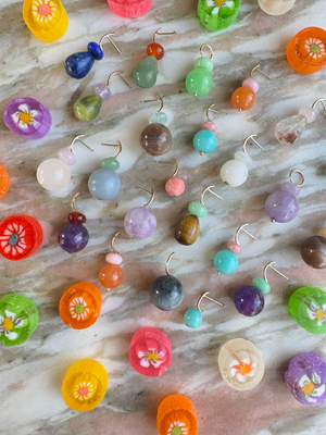 These little cuties are the perfect earring. They are light and perfect for everyday wear but still pack a vibrant gem punch. Your ear is supported by the post, which minimizes any ear sag, and the earring is secure with its gold nut. They maintain the simple, perfect look of an ear wire or a mini hoop and allow the gems to be the star of the show! Each candy like gem is hand selected, paired and placed to create a unique, wearable piece of art.