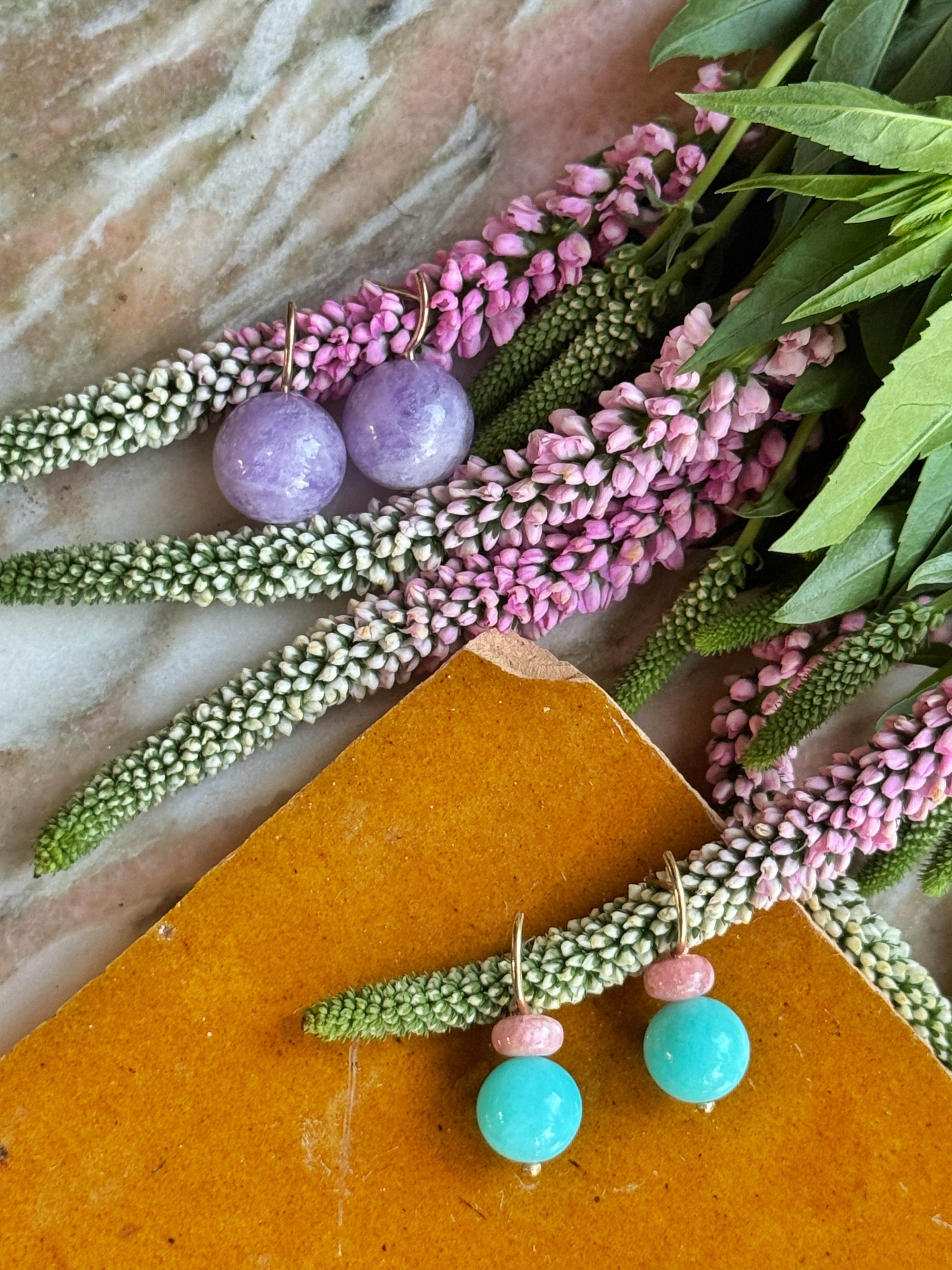 These little cuties are the perfect earring. They are light and perfect for everyday wear but still pack a vibrant gem punch. Your ear is supported by the post, which minimizes any ear sag, and the earring is secure with its gold nut. They maintain the simple, perfect look of an ear wire or a mini hoop and allow the gems to be the star of the show! Each candy like gem is hand selected, paired and placed to create a unique, wearable piece of art.