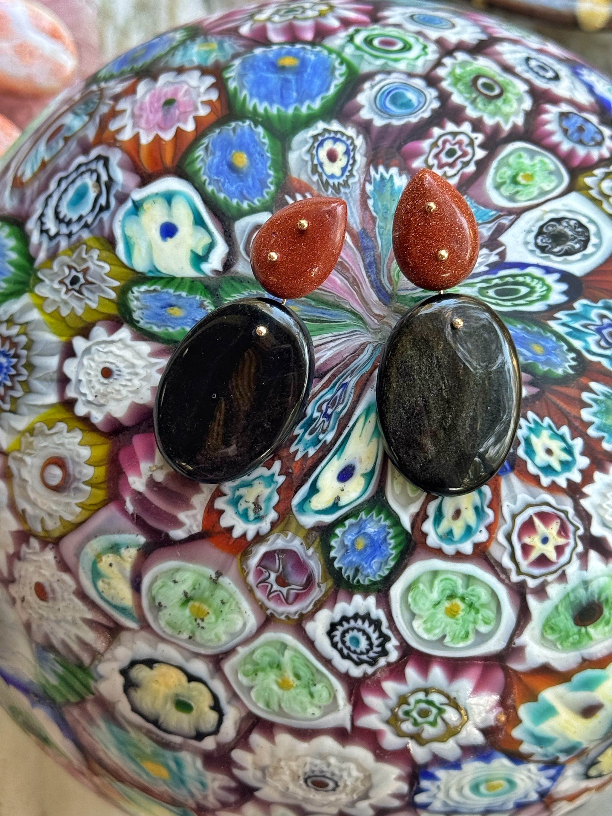 - Goldstone and Obsidian Stones. Please note - Goldstone is a manmade gemstone made from glass with copper inclusions. It is the only stone on the site that is a synthetic stone. I just really love its sparkle and nostalgic quality!