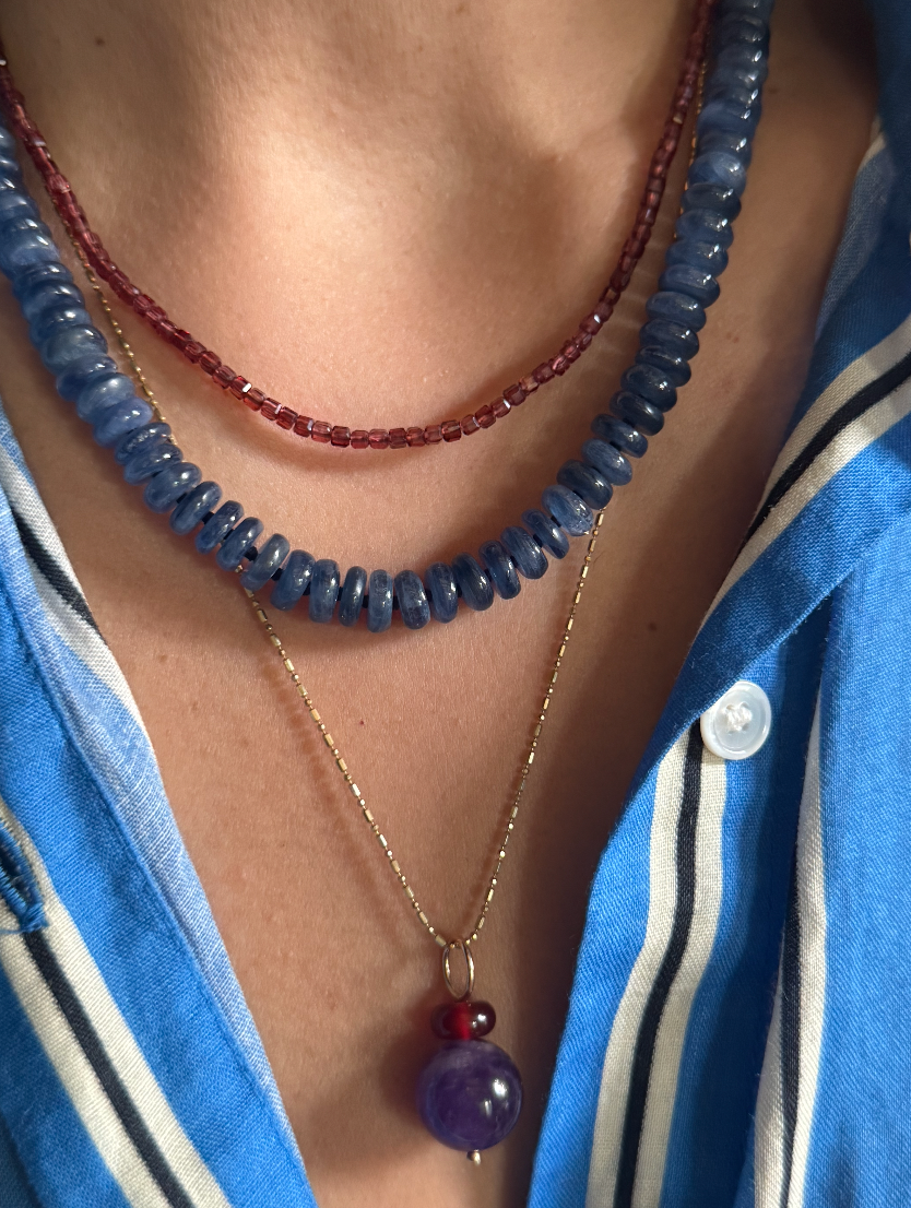 14k Yellow Gold and Gemstone Lucky Pom Charm with Carnelian and Amethyst. This delightful treasure makes the perfect daily gem charm addition to your neck stack. We know you'll love wearing this piece.
