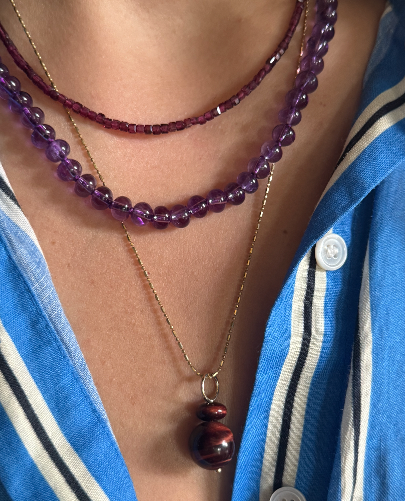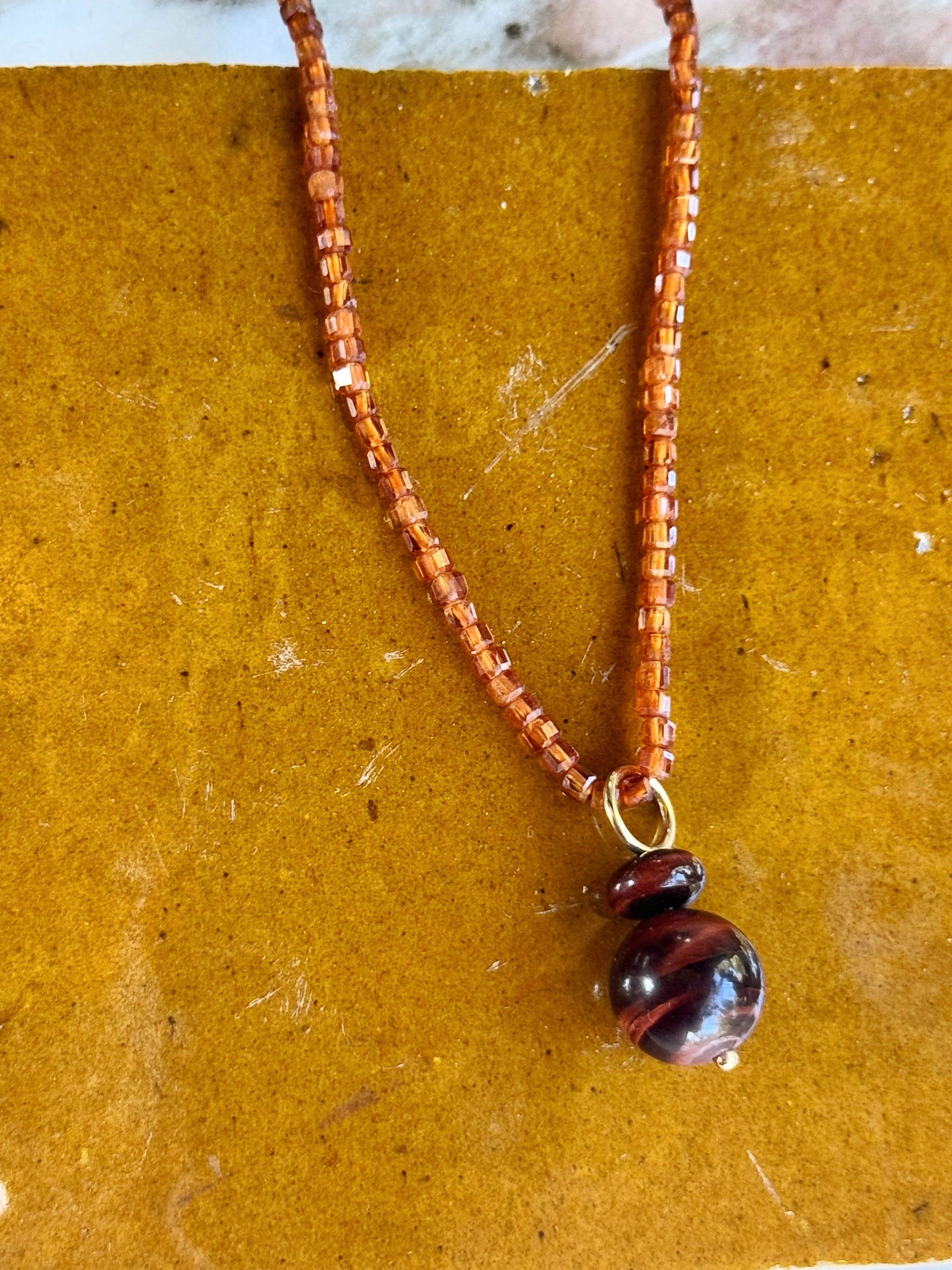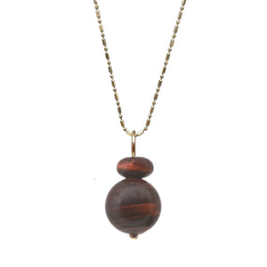 14k Yellow Gold and Gemstone Lucky Pom Charm with Red Tigers Eye. This delightful treasure makes the perfect daily gem charm addition to your neck stack. We know you'll love wearing this piece.
